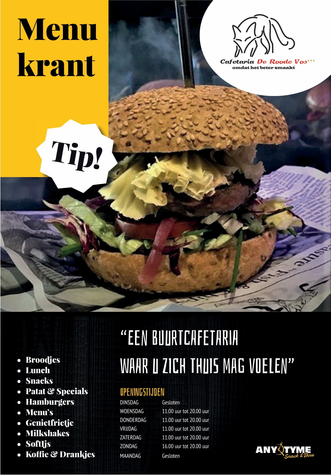 Hierin staan alle snacks, broodjes, en menu's vermeld